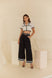 The lapel-collared shirt is hand-crafted in 100% handloom, white linen fabric and is adorned with black scallop lace all over. The shirt features chest pockets along with flower shaped mother-of-pearl buttons.